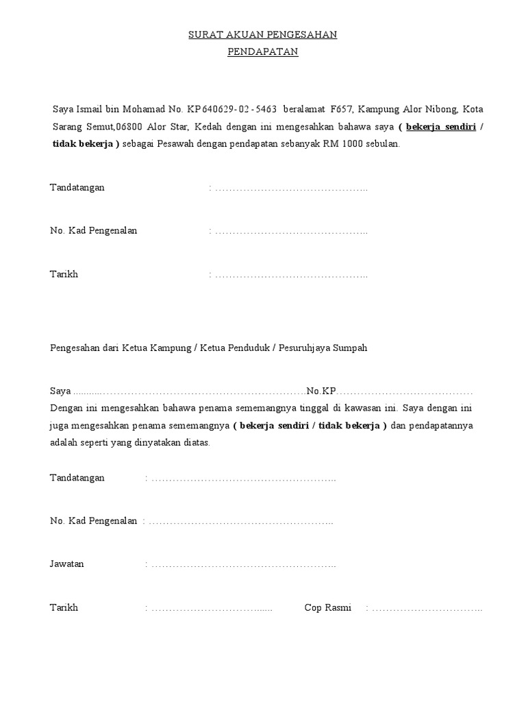 Surat Akuan Pengesahan Pendapatan Bekerja Sendiri October 2019. Sekiranya anda menyebut lebih. Sekian untuk makluman dan tindakan.
